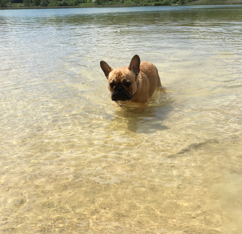 Depuis les beaux jours on l'emmène au lac et il adore allé jouer dans l'eau. "